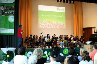 Dort wurden sie von den Schülerinnen und Schülern der Klasse 6a mit musikalisch vorgetragenen Tipps für die ersten Schulwochen empfangen. Begleitet von ihren Ukulelen sangen die Sechstklässler beispielsweise von den besten Ideen, die eine fünfte Klasse haben kann, wenn der Lehrer noch nicht zum Unterricht erschienen ist.