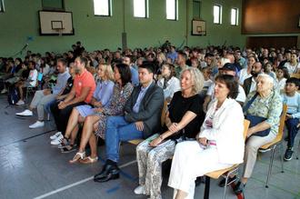 Nachdem auch der Vorsitzende des Elternbeirats, Herr Matthias Warmuth, die Fünftklässler begrüßt und ihnen einen erfolgreichen Start in das Schuljahr gewünscht hatte, wurde es für unsere Neuen noch einmal richtig spannend: die Klassenleiter der fünften Klassen Wilma Kinast (5a), Marcel Gläßer (5b), Janik Stähler (5c) sowie Elena Dötsch und Conny Herzmann (5d) wurden vorgestellt.