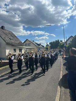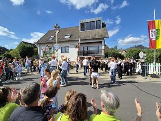Am Nachmittag, um 15 Uhr, setzte sich dann der traditionelle Kirmesumzug in Bewegung. Während dieser in anderen Gemeinden zunehmend an Bedeutung verliert, ist er in Hübingen nach wie vor fest verankert. Auch wenn der Zug dieses Jahr aufgrund etwas unklarer Absprachen ungeplant etwas kürzer ausfiel als gewohnt, war der Zuspruch ungebrochen – nahezu der gesamte Ort war auf den Beinen und füllte die Mittelstraße bis auf den letzten Platz.