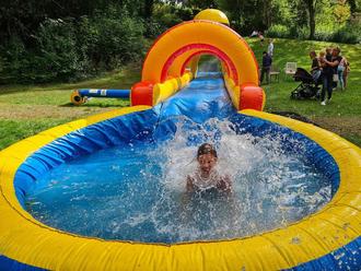 Die Besucher erwartete ein buntes Programm: Mutige rutschten die spektakuläre XXL-Wasserrutsche hinunter, Kinder tobten auf der Hüpfburg, bauten mit Rohren und Kugeln an der XXL-Baustelle oder probierten die vielen Holzspielzeuge aus. Der Zauberer Tim Salabim sorgte mit gleich zwei Shows für große Augen und lautes Staunen.