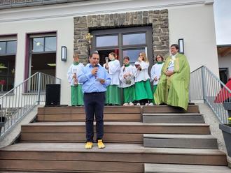 Andree Stein, Erster Beigeordneter der VG Montabaur, freut sich über 20 neue Kita-Plätze, denn sie sichern den Nachwuchs für die Region. Augenzwinkernd appelliert er an die Bewohner, dafür Sorge zu tragen, dass die Plätze stets besetzt bleiben. Anna Paris, die zuständige Kita-Koordinatorin der Pfarrei, betonte, dass das Projekt von vielen Händen getragen wurde und so erfolgreich war, weil jeder an seinem Platz mit angepackt habe. Nach der Segnung des Hauses durch Pfarrer Steffen Henrich durfte Kita-Kind Leonard Stera zur offiziellen Eröffnung das Band durchschneiden. Im Anschluss gab es ein buntes Rahmenprogramm, bei dem auch für Essen und Trinken bestens gesorgt war.