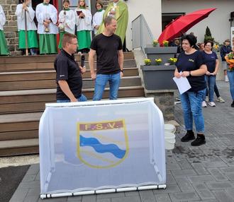 Ein Überraschungsgeschenk gab es zum Einzug vom FSV Gelbachtaler Sportfreunde, die den Kindern ein kleines Fußballtor schenkten.