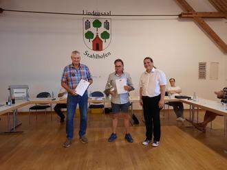 Besondere Anerkennung wurden Volker Buchholz und Jürgen Pehl zu Teil. Beide engagieren sich seit 25 Jahren in einer kommunalpolitischen Tätigkeit. "Keine Selbstverständlichkeit, sich auch mal hartem Wind auszusetzen und so lange für die Sache einzutreten, immer mit dem Herz an der richtigen Stelle und den Blick auf "unser Stohlwe" gerichtet," fasst George zusammen. Volker Buchholz und Jürgen Pehl wurden mit Ehrenurkunden des Gemeinde- und Städtebundes Rheinland-Pfalz geehrt.