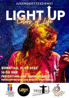 Montabaur. Unter dem Motto „LightUp - Colors of Life“ lädt die Ökumenische Jugendkirche Way to J. am Samstag, den 21. September 2025, zu einem besonderen Jugendgottesdienst ein. Beginn ist um 16 Uhr auf der Freizeitanlage Quendelberg in 56410 Montabaur (Fröschpfortstr. 8).