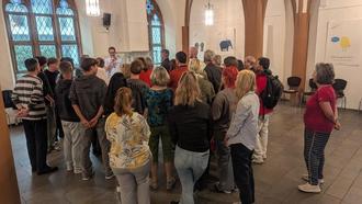 "Hand aufs Herz: Was ist Deine Position?" Mit dieser Frage eröffnete Alexander Trennheuser sein Trainingsprogramm "Demokratie-Fitness". Im Rahmen der landesweiten "Langen Nacht der Demokratie" hatten die Volkshochschulen der VG Montabaur und des Westerwaldkreises zu diesem Workshop ins historische Rathaus der Stadt eingeladen. Es gehe darum, seine Position zu finden und diese dann auch zu vertreten und sich in Frage stellen zu lassen. "Das erfordert Kraft und Durchhaltevermögen, kann auch schon mal zu Muskelkater führen", so Trainer Alexander Trennheuser, der Bundesgeschäftsführer des Vereins "Mehr Demokratie e.V." ist und eigens für Fitness-Abend nach Montabaur gekommen war. Mehr als 40 Demokratie-Interessierte jeden Alters legten sich die Hand aufs Herz und suchten ihre Position zu Fragen wie "Sollte Cannabis wieder verboten werden?" oder "Sollte das Bürgergeld gekürzt werden?". Bei den anschließenden Übungen ging es mehr um die Standhaftigkeit und Kompromissbereitschaft als um die eigentliche Sachfrage. "Es war schwer, bei der eignen Meinung zu bleiben, aber am Ende war ich überrascht, wie produktiv der Austausch war", so das Resümee einer Teilnehmerin. Zu Beginn des Abends hatte der Erste Beigeordnete Andree Stein in der Bürgerhalle die Ausstellung "Demokratie buchstabiert" eröffnet, die sich in Form von Cartoons mit verschiedenen Aspekten der Demokratie auseinandersetzt.