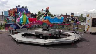 Die Fahrten auf dem Fliegerkarussell sind gratis. Es steht auf dem Parkplatz von Möbel Hermes, Bäckerei Hoefer, Centershop und McTREK. (Foto: Schaustellerbetrieb Ludwig, Horressen)