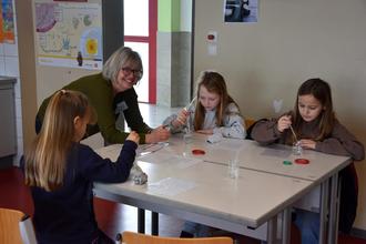 Das Programm für die „kleinen“ Besucherinnen und Besucher ließ keine Wünsche offen. In den modern ausgestatteten naturwissenschaftlichen Fachräumen erkannten junge Entdeckerinnen und Entdecker, dass Naturwissenschaften keine trockene Theorie, sondern praxisbezogen sind, denn sie durften nach Herzenslust mit dem Mikroskop arbeiten, Vulkanausbrüche verursachen, Autorennen veranstalten, mit Bunsenbrenner & Co. Stoffe trennen und vieles mehr.
