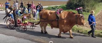 Die Zusammenstellung des Zuges, zu dem sich dann noch eine Kutsche mit Ehrengästen, ein Ochsengespann mit Leiterwagen und ein kuhgezogenes altes Mähwerk gesellten, war unseren Spezialisten anvertraut; eine Bestleistung, denn das Wohl der Tiere stand hierbei immer im Vordergrund; Gratulation und Dank hierfür!