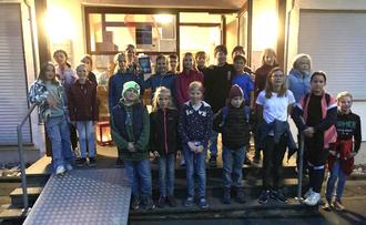 21 mutige Kinder ab 10 Jahren trafen sich zur Gruselgeschichten-Wanderung an der Bücherei Holler.