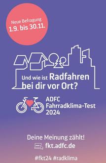 Die Umfrage zum großen ADFC-Fahrradklima-Test 2024 läuft seit einigen Wochen. Radfahrerinnen und Radfahrer sind eingeladen, bei der Online-Umfrage auf www.fkt.adfc.de beispielsweise das Sicherheitsgefühl, die Breite der Radwege und die Erreichbarkeit der Ziele mit dem Rad zu bewerten. Schwerpunktthema ist in diesem Jahr das Miteinander im Verkehr.