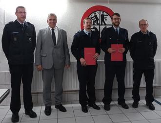Matthias Jäger (Zweiter von rechts) ist der neue Löschgruppenführer der freiwilligen Feuerwehr Horressen-Elgendorf: Er löst damit Manuel Müller (rechts) ab, der seit 11 Jahren das Amt innehatte. Bild: Freiwillige Feuerwehr Horressen-Elgendorf