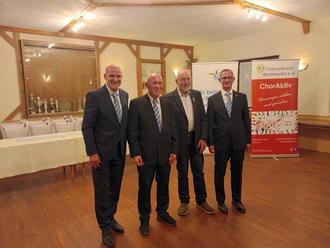 v.l.Vorsitzender Thorsten Lind, Heinz Albrecht, Alfred Labonte, Vorsitzender Chorverband Westerwald und 2. Vorstand Ralf Nebgen.