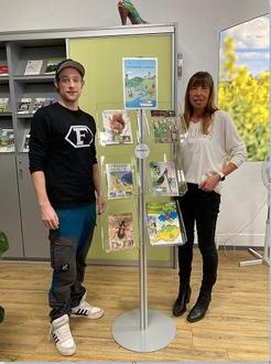 Präsentieren den Infoständer mit Broschüren des Naturpark Nassau in der Tourist-Information Montabaur: Naturparkreferent Stefan Eschenauer und Leiterin der Tourist-Info Karin Maas. (Quelle: VG Montabaur)