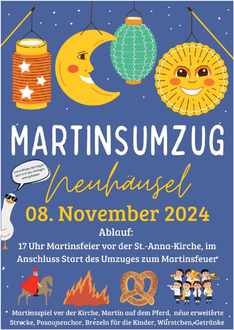 | 17:00 | St. Martinsumzug Neuhäusel, Start an der Sankt-Anna-Kirche |