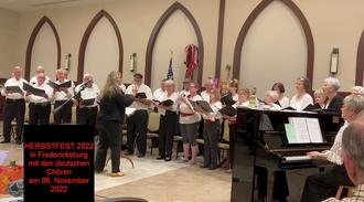 Die beiden deutschen Chöre in Fredericksburg - der Hermannsöhne Gemischter Chor und der Arion Männerchor wurden von der Pianistin Annabel Wilkinson am Piano begleitet. Im Repertoire waren beispielsweise auch das Loreleilied, Frühlingsliebe, sowie Hebe deine Augen auf von Felix Mendelssohn. Darüber hinaus bot sich auch die Möglichkeit, in die vierstimmige Aufführung kräftig einzustimmen mit den noch gepflegten Liedern: Muss I denn zum Städtele hinaus, Mein Hut der hat drei Ecken, In München steht ein Hofbräuhaus, Im Himmel da gibt es kein Bier, Immer noch ein Tröpfchen, Du, du liegst mir im Herzen - wobei auch die Gedanken von einigen nach Montabaur und den Westerwald gingen.