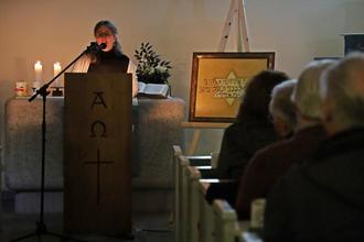 „Es war ein sehr beeindruckender und harmonischer Abend,“ war die Rückmeldung einer der rund 70 Teilnehmer am Gedenkabend an die Opfer der Novemberpogrome in der ehemaligen Synagoge in Mogendorf. Geschichtsexperte Bernd Stöder gab zunächst einen historischen Überblick über die jüdische Gemeinde. Erstmalig namentlich erwähnt wird Ende des 17. Jahrhunderts der Jude Salomon. Für rund 50 Jahre gehen die Mogendorfer Juden in die Synagoge nach Selters. In 1746 mieten sie in Mogendorf einen Raum als Synagoge an. 1845 entschloss sich die Jüdische Gemeinde, eine neue separate Synagoge zu bauen, die den Juden aus Mogendorf, Vielbach und Quirnbach als Versammlungsort dient. Am 10. November 1938 wird die Synagoge im Rahmen der landesweiten Novemberpogrome das Ziel der SS und der SA, die sie bis auf die Grundmauern zerstören, berichtete Bernd Ströder. Die letzten Mogendorfer Juden werden am gleichen Tag deportiert. 14 Jahre später verkauft die Jüdische Kultusgemeinde Koblenz das Grundstück an die Evangelische Kirchengemeinde Nordhofen, die die Ruine der Synagoge zur evangelischen Kirche Mogendorf umbaut. Im Anschluss an Bernd Ströders Vortrag sprach Judaistikexpertin Dr. Judith Thomanek über ein Bild, dass schon viele Jahre in der Mogendorfer Kirche hängt. Es zeigt das Schma Israel, das jüdische Glaubensbekenntnis in hebräischer Schrift, das inhaltlich 5. Mose 6, Vers 4-6 entspricht. Mit vielen Beispielen erläuterte Dr. Thomanek die einzelnen Zeilen des Textes. „Das Schma Israel ist das Grundprinzip und Fundament der jüdischen Theologie“, sagte sie. Zudem erklärte sie unter anderem die Bedeutung der Tefillin (Gebetsriemen), die zum Gebet angelegt werden und der Mesusot (Kapseln an den Türpfosten jüdischer Häuser), deren Verwendung auf das Schma Israel zurückgehen. Im Anschluss schlug Judith Thomanek eine Brücke zwischen Judentum und Christentum und gleichsam auch zwischen der ehemaligen Synagoge und heutiger evangelischer Kirche in Mogendorf. „In Markus 12, Vers 33 wird Jesus Christus nach dem höchsten Gebot gefragt. Er nennt das Schma Israel und gleichwertig das Gebot der Nächstenliebe“, so Thomanek. Stimmungsvoll musikalisch gestaltet wurde der Abend von Thomas Peters von Klezfluentes, der mit Klarinette, Bassklarinette und Tenorsaxophon Klezmer-Musik vortrug. Im Anschluss kamen die zahlreichen Besucher bei Tee und Plätzchen ins Gespräch, die die Kirchengemeinde vorbereitet hatte.