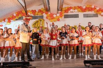 „Diese Formation gab es nur heute Abend zu sehen“, so die Trainerin Laura Esposito. Eine Laudatio auf die Hofsänger hielt Uli Pfeil, ehemaliger Büttenredner und Ehrenvorsitzender des ECV. Er berichtete von 251 Lieder in 40 Jahren Hofsänger sowie viele Auftritte auch außerhalb von Eschelbach. Dann kam das Geburtstagskind – die aktuellen Eschelbacher Hofsänger und gaben ein kleines Konzert aus den vergangenen 20 Jahren.