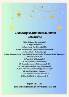 Anmeldungen zum lebendigen Adventskalender in Eitelborn sind derzeit noch möglich - bitte melden Sie sich gern unter: