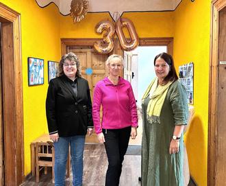 Sabine Lorenz bedankte sich für die Wertschätzung und betonte, dass der Erfolg nur durch ein starkes Team möglich sei. Die Gratulation fand in der Ergotherapie-Praxis Knopp-Stephan statt, die am gleichen Tag ihr 30 jähriges Jubiläum feierte.