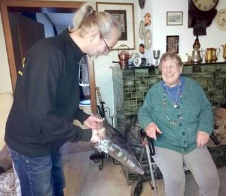 Mit den Worten: „Damit Sie auch in Zukunft eine Erinnerung an Montabaur und die Deutsch-Englische Gesellschaft haben“ überreichte der Erste Vorsitzende Bernhard Winter ein Bild des Jubiläums der Partnerstädte vom vergangenen Jahr an Frau Flikschuh. Im Namen aller Mitglieder wünschte er ihr alles Gute, beste Gesundheit und einen guten Start in den neuen Lebensabschnitt.