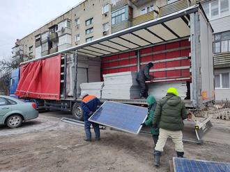 Die Stadt Montabaur organisierte einen Hilfstransport mit 600 gespendeten neuwertigen Solarmodulen und einem vom ukrainischen Generalkonsulat in Frankfurt zur Verfügung gestellten Diesel-Stromgenerator.