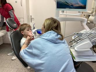 Was auch noch richtig lustig war, wir sahen unsere Zähne auf einem Bildschirm sogar.