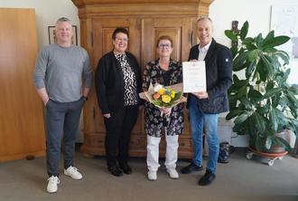 Im Rahmen einer kleinen Feierstunde verabschiedete Bürgermeister Michael Merz die Kollegin offiziell und überreichte eine Dankurkunde sowie ein Blumenpräsent. Büroleiter André Heuser und die Vorsitzende des Personalrates der Verbandsgemeinde Ransbach-Baumbach, Martina Quirmbach, waren ebenfalls zugegen und überbrachten ihre guten Wünsche für den neuen Lebensabschnitt.