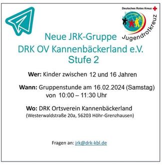 Eine vorherige Anmeldung ist nicht erforderlich. Bei Fragen wende dich bitte über Mail an jrk@drk-kbl.de