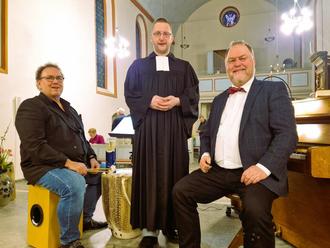 Gemeinsam gestalteten Pfarrer Carsten Schmitt mit Joachim Westphal (Perkussion) und Dekanatskantor Jens Schawaller (Klavier und Gesang) vom trio flex & friends als der Band der Evangelischen Kirchengemeinde Ransbach-Baumbach - Hilgert in der Musikkirche den Auftaktgottesdienst der Reihe „Sieben Wochen Songs“, bei der ausgewählte Pop- bzw. Rocksongs die Gottesdienstbesucherinnen und Gottesdienstbesucher durch die Passionszeit begleiten.