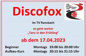 Anmeldung: Rolf Neiß, mobil 0176-10046796, discofox@tv-ransbach.de