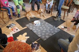 Wo sonst die kräftigen Männerstimmen der Herrenrunde zum Frühschoppen zu hören sind, waren es an diesem Sonntag (03.03.2024) fröhlich aufgeregte Kinderstimmen. WiWaWuff, das Seminar für Kinder mit kleinem Hundeführerschein zum Abschluss stand auf dem Tagesprogramm. Grundschullehrerin, Vereinsmitglied und THS-Trainerin Silke Pook-Sesterhenn mit ausgebildeter Schulhündin „Charly“ leitete das Seminar. In rund 45 Minuten Theorie im gemütlich vorgeheizten Vereinsheim lernten die 11 Schulkinder so manches aus dem Alltag eines Hundelebens. Wie gehe ich auf einen Hund zu? Was mache ich, wenn ich fremden Hunden begegne? Wie gut funktioniert ein Hundegehör oder eine Hundenase? Welche Lebensmittel können schädlich oder sogar tödlich für einen Hund sein? Und vieles mehr. Natürlich durfte auch jedes Kind noch auf den besonderen Hundethron und ein persönliches Versprechen an Charly abgeben.