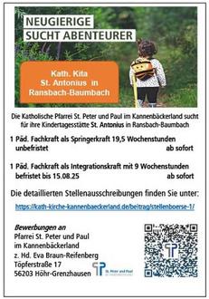 Auch in diesem Jahr führen wir wieder traditionsgemäß unsere Buswallfahrt zum heiligen Blut nach Walldürn durch. Die Pilgerfahrt findet am 01.06.2024 statt. Nähere Informationen hierzu und Anmeldung bei Beate Ickenroth unter der Telefonnr. 02623/1781 und im Pfarrbüro St. Peter und Paul im Kannenbäckerland unter der Telefonnr. 02624/943420.