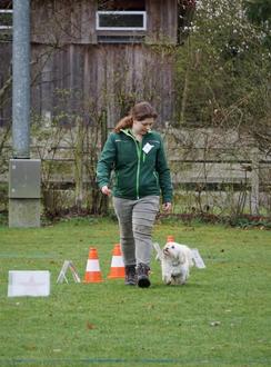 Nach dem frühlingshaften Auftakt zum Saisonstart zwei Wochen zuvor, zeigte sich das Wetter am Samstag, 14.03.2026 eher wieder von seiner typisch durchwachsenen Seite. Davon ließen sich drei Mitglieder vom Hundesportverein Ransbach-Baumbach e. V. nicht abhalten. Sie nahmen beim HSV Mainflingen e. V. an einem Rally-Obedience Turnier teil. Gestartet wurde in verschiedenen Leistungsklassen. Sonja Gröters startete mit ihren 3 Zwetna Bolonkas Purzel, Lucy und Coco nacheinander in der Klasse Beginner. Purzel durfte als Erster von 16 Startern loslegen. Roch der Parcours zu Beginn recht gut für Purzel und die Nase wollte sich schon selbständig machen, so sortierte er sich recht schnell. Er absolvierte den Parcours mit vollen 100 Punkten, ein „vorzüglich“ in der Bewertung und sicherte sich damit Platz 1. Im Anschluss durfte Coco starten. Sie machte ihre Sache super. Nur Hundeführerin S. Gröters machte vor lauter Schwung einen Schritt zu viel - 1 Punkt Abzug. Mit 99 von 100 möglichen Punkten und der Bewertung „vorzüglich“ gingen sie vom Platz. Die Zwei belegten damit den 4. Platz. Als 3. im Bunde durfte Lucy zeigen was sie kann. Sie lief wie immer zuverlässig an S. Gröters Seite und verdiente sich ihre 100 Punkte, in der Bewertung ein „vorzüglich“ und Platz 3. Mit der Besetzung des 1., 3. und 4. Platzes kann man sich mehr als zufrieden zeigen. Wiederholt startete Nico Leicher mit El Monte (Miniature American Shepherd) in Klasse 1. In der Leistungsklasse 1 ging es direkt mit einer „MSÜ“ (Mehr-Schild-Übung) los, mit Vorsitz als 2. Schild. Der Vorsitz saß perfekt. Auch ein weiteres Mal Vorsitz klappte ohne Beanstandung. Genauso problemlos absolvierte Monte die 180 Grad Drehung oder die 8 mit Ablenkung. Mit vollen 100 Punkten und der Bewertung „vorzüglich“ ging es vom Platz. Obwohl die Zwei in diesem Turnier eine noch flottere Sohle als im vergangenen Turnier ablieferten und knapp 7 Sekunden schneller waren, schaffte es ein Turnierteilnehmer die vollen 100 Punkte ebenfalls einzuheimsen, dabei aber noch mal 8 Sekunden schneller zu sein. Somit fanden sich die Zwei trotz voller Punktzahl auf Platz 2 wieder. Das entmutigt N. Leicher keineswegs und der Plan im Laufe der zweiten Jahreshälfte in die Leistungsklasse 2 zu wechseln bleibt bestehen. Um das Trio komplett zu machen startete Ronja Nengelken aus der Jugendabteilung mit Loki (Bordercollie-Großpudelmix) in Klasse 3. In der höchsten Leistungsklasse sind Hürden mit aufgestellt. Alle 3 Hürden überwand Loki ohne Probleme. Auch bei „Pylon umrunden“ blieb Loki brav stehen. Während des ganzen Parcours war Loki konstant an Ronjas Seite und zeigte sich aufmerksam. Lediglich beim Kommando „Steh“ machte er versehentlich „Sitz“. Das musste wiederholt werden, Punktabzug. Eine weitere Übung misslang, als Loki während des Rechtsgehens nicht verstand, dass er Ronja umrunden soll. Auch die Wiederholung wollte nicht klappen, Punktabzug. Das Rechtsgehen ist an sich im Hundesport schon besonders, aber mit umrunden gleich doppelt schwer. Da wurde die höhere Anforderung in Klasse 3 wieder deutlich. Mit 77 Punkten, der Bewertung „gut“ und dem 1. Platz kann sich das Ergebnis sehen lassen.