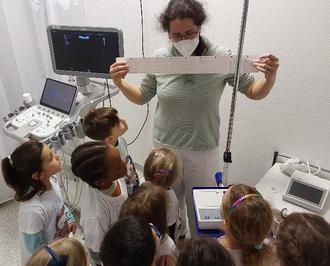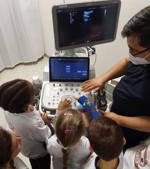 Dort hatten die Kinder die Möglichkeit, Fragen zu stellen, sich umzuschauen und ihnen wurde beispielsweise ein EKG gezeigt und vorgeführt. Besonders spannend war für alle: Sie konnten ein Ultraschallgerät testen. So konnten sie zum Beispiel das Herz bei einem anderen Kind oder auch bei sich selbst schlagen sehen, wie es das Blut durch den Körper pumpt.