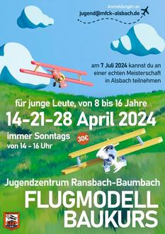 Der Modellflugclub Kannenbäckerland lädt junge Leute zum Modellbaukurs ins Jugendzentrum Westwood nach Ransbach-Baumbach ein. Wir wollen gemeinsam ein Segelflugmodell mit einer Spannweite von 110 cm bauen. Alle dazu benötigten Teile sind vorgefertigt und müssen in den Bastelstunden nur noch miteinander