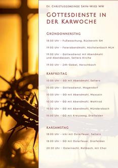 | 6:00 Uhr | Gottesdienst in der Osternacht Kirche Nordhofen |