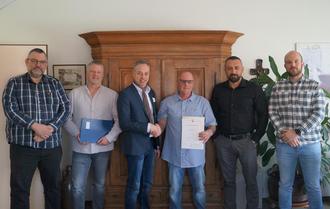 Dabei hat der Jubilar das komplette Vierteljahrhundert im Bereich unserer Abwasserwerke gearbeitet und sich dort von Beginn als Glücksgriff erwiesen. Der handwerkliche Allrounder war zuvor viele Jahre im technischen Bereich eines Krankenhauses in kirchlicher Trägerschaft beschäftigt, bevor er am 01.04.2000 den Dienst in seiner Heimatgemeinde antrat. Mit Zuverlässigkeit, Einsatzbereitschaft, Flexibilität und Teamfähigkeit, hat sich Horst Nink nicht nur im Kreise seiner Kolleginnen und Kollegen, sondern auch bei den Bürgerinnen und Bürgern der Verbandsgemeinde einen guten Namen gemacht. Und Anfang April -nach eben 25 Jahren- war es an der Zeit dies zu würdigen und einfach einmal Danke zu sagen, auch für die Treue zum Arbeitgeber, die in der heutigen Zeit nicht mehr selbstverständlich ist. Im Rahmen einer kleinen Feierstunde gratulierte und dankte Bürgermeister Michael Merz daher Horst Nink für die stets gute und vertrauensvolle Zusammenarbeit. Neben der Dankurkunde wurde noch ein kleines Präsent überreicht.
