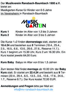 Jetzt noch schnell anmelden für die neuen Musik-Garten-Kurse!