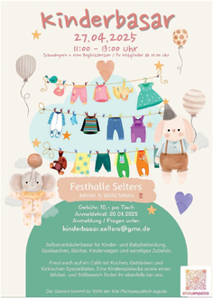 Für Verkäufer fällt eine Gebühr von 10,00 Euro pro Tisch an. Anmeldung und Fragen unter: kinderbasar.selters@gmx.de