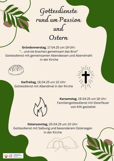 | 19.00 Uhr | Gottesdienst Gründonnerstag mit Abendmahl und anschl. Abendessen |