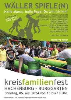 Nachdem in den vergangenen Jahren das beliebte Familienfest in anderen Verbandsgemeinden im Westerwald gastierte, dürfen sich nun bei der achten Ausgabe besonders alle Kinder, Jugendlichen und deren Familien aus dem Raum Hachenburg (und auch aus dem gesamten Westerwald) auf eine weitere Auflage dieser Veranstaltung freuen. Der Burggarten-Park wird zum Mega-Spielplatz und die Jugendzentren aus dem Westerwald zeigen, was sie so alles „in petto“ haben.