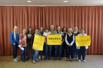 Voller Konzentration knobelten die Teilnehmerinnen und Teilnehmer des „Notenworkshops 3.0“ am Begrüßungstext, den ihnen die Veranstaltungsleiterin Gabi Eutebach-Karasu aus Noten und Buchstaben erstellt hatte. Wer die entsprechenden Notennamen im Text einsetzen konnte, bekam die richtige Lösung heraus. Dies gelang allen mit Bravour.