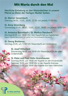 | 18:00 Uhr | Maiandacht in der alten Lindenstraße |