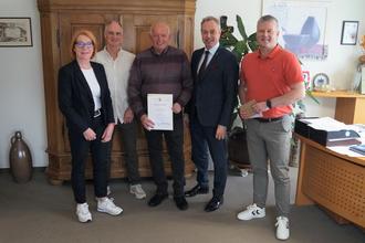 Im April 1990 begann der gelernte Tischlergeselle, der sich anschließend zum geprüften Bautechniker weitergebildet hatte, seinen Dienst im Hochbauamt der Verwaltung, der er bis zum heutigen Tage treu geblieben ist. Wer in unserer Verbandsgemeinde schon einmal mit einem Bauantrag oder Bebauungsplan zu tun hatte, der ist mit ziemlich großer Sicherheit mit Wolfgang Kambeck in Kontakt getreten. Mit ihm verliert die Verbandsgemeindeverwaltung Ransbach-Baumbach nicht nur einen echten Fachmann, sondern auch einen geschätzten und beliebten Kollegen und Mitarbeiter. Im Rahmen einer kleinen Feierstunde gratulierten von links nach rechts auch Claudia Altwasser als Personalrätin, Markus Waschbüsch als Fachbereichsleiter, sowie André Heuser als Büroleiter dem künftigen (Un-)Ruheständler (Mitte) zum Renteneintritt. Bürgermeister Michael Merz, der sich auch persönlich für die jahrzehntelange, sehr gute Zusammenarbeit bedankte, überreichte die Dankurkunde der Verbandsgemeinde Ransbach-Baumbach sowie ein kleines Präsent zum Abschied.