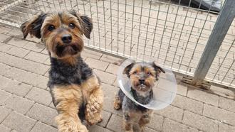 Den zwei Yorkshire Terrier Mischlingen fehlt eine Couch um zu dösen und die volle Aufmerksamkeit von ihren Menschen.