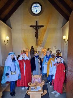 Auch in diesem Jahr waren die Sternsinger wieder am Kapellchen und haben, wie schon in den vergangenen Jahren, die Kohlen für die Weihrauchgefäße am Friedenslicht aus Bethlehem angezündet. Im Anschluss brachten sie den Segen mit Weihrauch und Kreide ins Dorf und seine Häuser.
