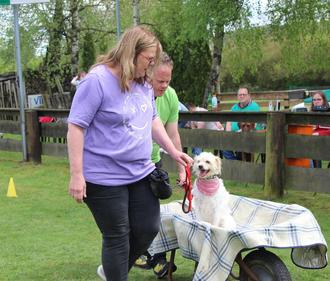 Mehr „Fun“ geht kaum noch. Für Hund und Halter war am 06. Mai 2023 mächtig Unterhaltungsprogramm auf dem Vereinsgelände des Hundesportverein Ransbach- Baumbach e. V. für Mitglieder und Interessierte mit ihren Vierbeinern geboten. Rund 30 Teilnehmer und noch mal so viele Zuschauer kamen um dem Spektakel beizuwohnen. Über den kompletten Vormittag und weit in den Nachmittag hinein machten Jung und Alt, Klein und Groß bei dem moderat gestalteten Fun Parcours mit. Von den 8 Stationen war eine lustiger als die andere. An Station 1: Eine Wanne gefüllt mit Wasser aus der das Lieblingsspielzeug von dem Hund rausgefischt werden musste. An Station 2: Hund und Halter tauchten unter einem riesigen Schwungtuch durch. An Station 3: Wurde es dann kniffelig für Besitzer mit verfressenen Hunden. Es mussten im „Zick-Zack-Slalom“ Tellerchen mit Hundeleckerli´s umrundet werden. Für mach einen Vier- und Zweibeiner eine echte Herausforderung. An Station 4: Ein Bällebad aus dem der Hund sein Lieblingsspielzeug wieder raussuchen sollte. Station 5: Ein aus bunten Stangen gelegtes Spinnennetz in der Wiese, über das Hund und Halter steigen mussten, ohne eine Stange zu berühren. Es zeigten sich die lustigsten Verrenkungen. An Station 6: Wer noch den guten alten Eierlauf kannte, durfte diesmal mit Hund neben sich, 3x im Kreis um eine Stange, ein paar Meter weiter das Ganze noch mal und wieder zurück. Wer da aus dem Gleichgewicht kam und das Ei zu Boden ging, konnte sich sicher sein, dass der Hund wenigstens versuchte es zu bekommen. An Station 7: Blieb der Hund in einem Aufstellversteck und der Besitzer versteckte sich am anderen Ende des Hundeplatzes in einem der drei zur Auswahl stehenden Verstecke. Nun musste der Hund ohne Sichtkontakt auf Zuruf zum richtigen Versteck finden. Bis auf eine absolut pfiffige Ausnahme schafften es alle Hunde auf direktem Weg. HSV-Liebling „Lola“ (von Sascha Lahnstein) absolvierte den Parcours bis dahin sehr erfolgreich mit einer Spitzenzeit. Allerdings nutzte die blitzgescheite Mischlingshündin aus dem Tierschutz die Gunst der Stunde ohne Leine. Sie flitzte in einem Affenzahn quer über den Platz und räumte in atemberaubendem Tempo die Tellerchen vom Leckerli-Slalom an Station 3 ab. Freute sich ihres Lebens, drehte kurz eine Ehrenrunde, kontrollierte noch mal die inzwischen leeren Tellerchen und entsann sich dann ganz spontan doch noch Herrchen im Versteck zu finden. An Station 8: Dort wurde der Hund in eine Schubkarre gesetzt und die letzten Meter ins Ziel gefahren. Am Ende entschied die Stoppuhr über den 1.-3. Platz. Den 1. Platz belegte L. Schultheis mit span. Wasserhündin „Cleo“ in 2:29 Sek., 2. Platz M. Schenkelberg mit Mischling „Siwa“ in 2:31 Min., 3. Platz H. Schultheis mit span. Wasserhund „Ayk“ in 2:43 Min.