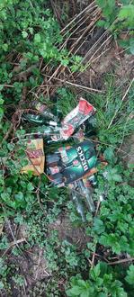 In der Natur entsorgte Glasflaschen nach einer Party