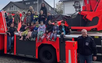 Auf Wunsch der Kinder wurde sogar das große Feuerwehrauto mit der Drehleiter von Herr Faller auf den Hof gefahren und konnte von allen Seiten bewundert werden.
