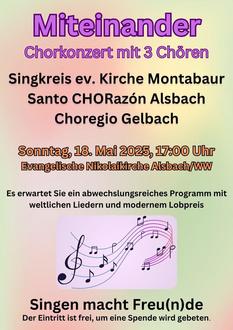 | 17:00 Uhr | Konzert mit drei Chören in der Nikolai-Kirche in Alsbach |